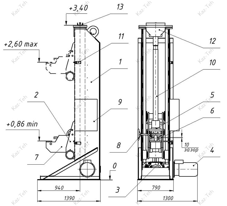 1 — станина; 2 — каретка подъемная; 3 — редуктор червячный; 4 — электродвигатель;