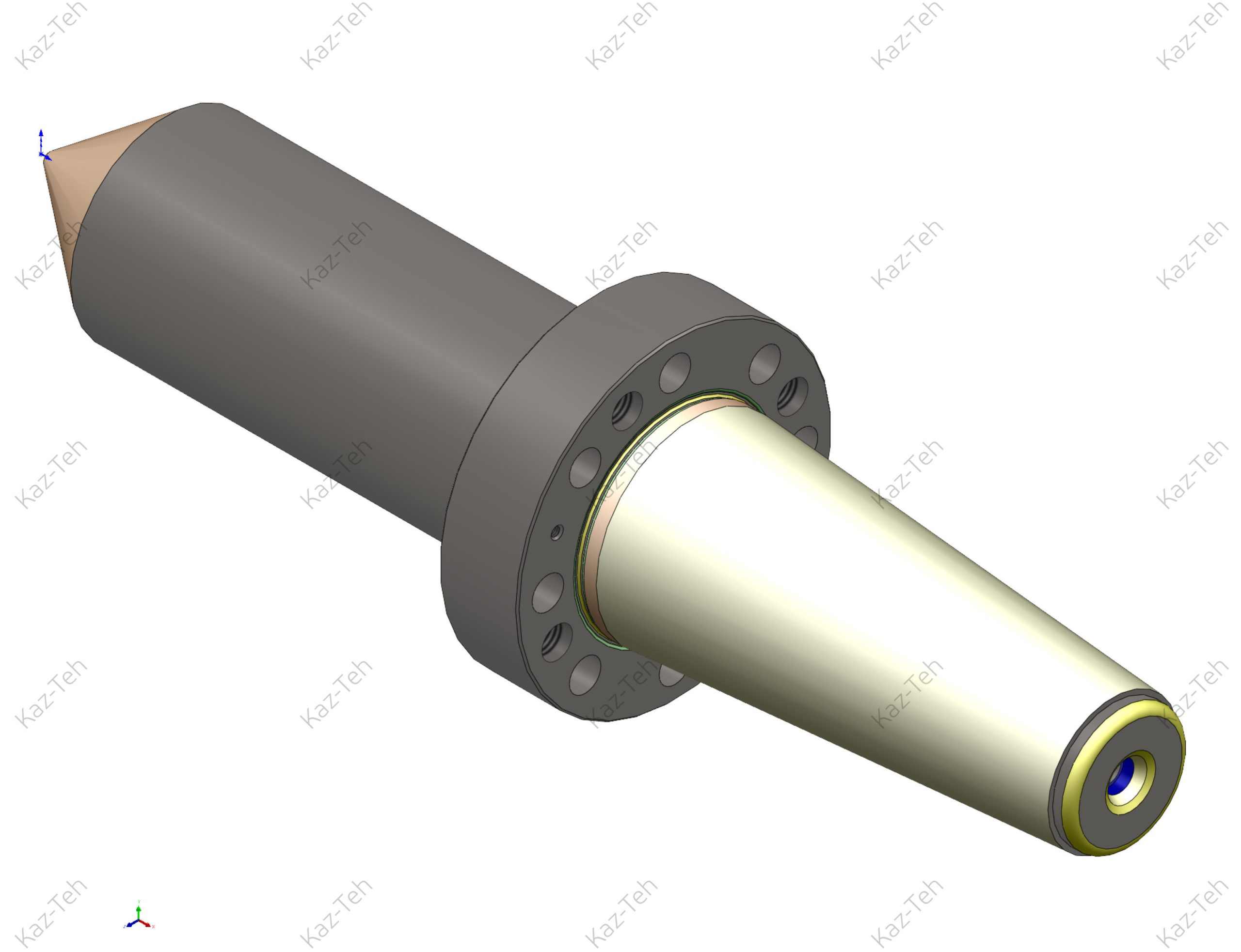 Центр (конус) упорный удлиненный для тяжелых токарных станков 1А660, 1А665, 1А670, 1А675. Применяется для зацентровки (базирования) заготовки по ее центровым отверстиям на токарно-винторезных станках КЗТС.